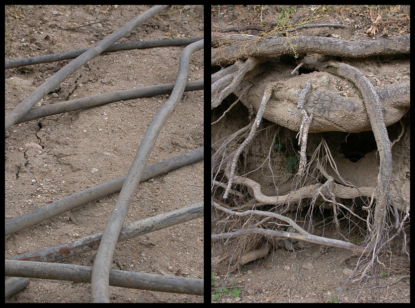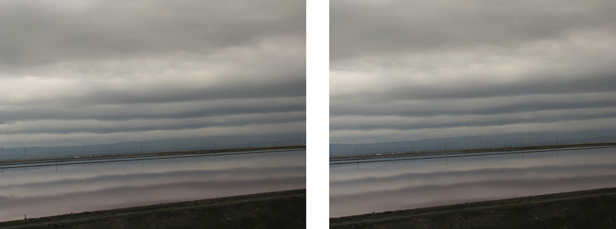 These two young males decided to lay down near each other in late afternoon shade. They were just within view through my kitchen window and they weren’t going anywhere, but no matter how many photos I took, the glass distortion and lighting conspired to leave me with less than satisfactory shots. Additionally, there was that exposed (defunct) pipe jutting out off the ground next to the upper deer in every single image. It was the layered appearance of the background and the repeating shapes of the deer that had compelled me to take the photo in the first place, so I tried to focus on those elements when cropping and transforming it. (In this case, the filtering process also makes it very easy to seamlessly clone a portion of the background to obscure the unattractive pipe.)