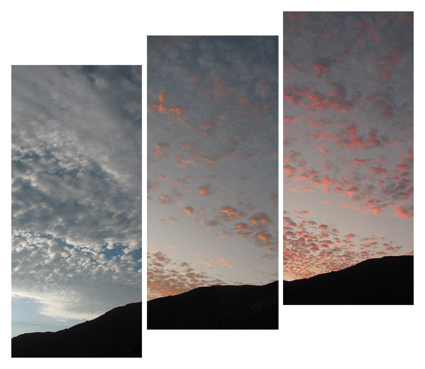 When I went out for my evening walk yesterday it was hot and muggy. It didn’t matter! The sky had been beckoning me all day and now I was ready and waiting to enjoy the symbiosis of clouds and color. The quickly changing light transformed the hillsides such that I could stand in one spot and create several pleasing variations of the same image…
